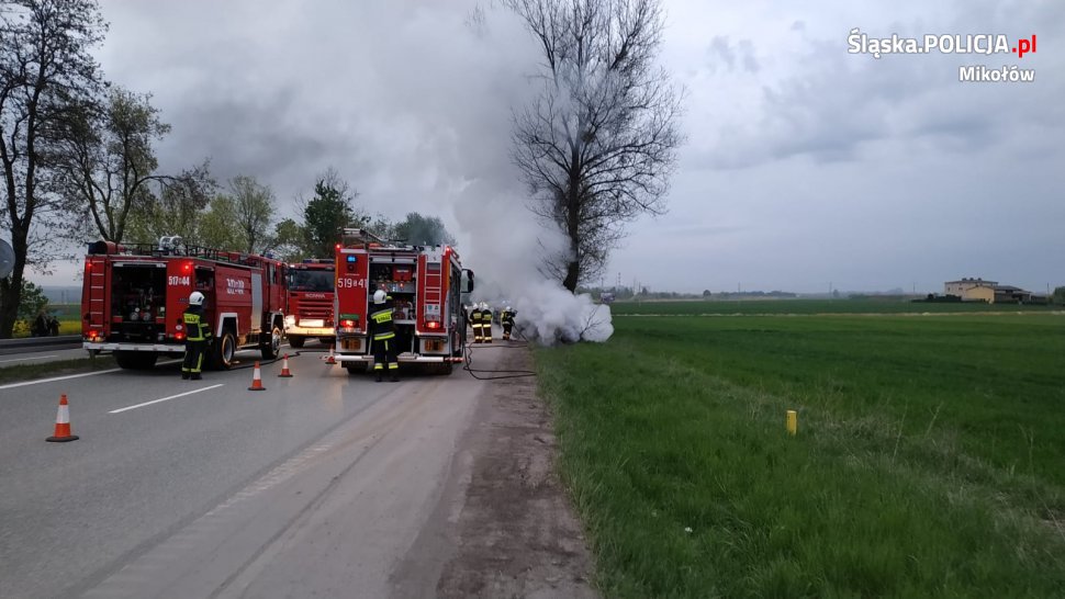 Do zdarzenia doszło w sobotę 4 maja około godziny 19.40 na DK- 81 w Orzeszu. Kierująca seatem leonem jadąc w kierunku Katowic, utraciła panowanie nad pojazdem, a następnie uderzyła czołowo w przydrożne drzewo. W wyniku zderzenia samochód stanął w płomieniach. Pomimo natychmiastowej reakcji innych kierowców, którzy usiłowali ugasić płonący samochód i pomóc kobiecie, niestety 29 latki z Orzesza nie udało się uratować i poniosła śmierć na miejscu.