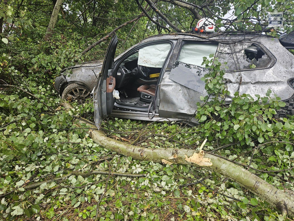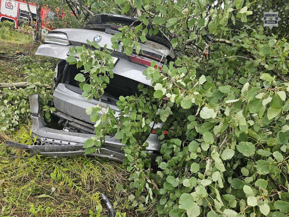 Do groźnie wyglądającego zdarzenia doszło w niedzielę przed godziną 15.00 na drodze krajowej 81 w Łaziskach Górnych. Dyżurny Komisariatu Policji w Łaziskach Górnych otrzymał zgłoszenie o samochodzie osobowym, który dachował. Na miejsce natychmiast udały się służby. Z ustaleń pracujących na miejscu zdarzenia policjantów wynika, że 57-letni kierujący samochodem marki BMW na łuku drogi utracił panowanie nad pojazdem, zjechał z drogi na teren zielony i uderzył w drzewo. Mieszkaniec Katowic jechał sam, został przebadany na zawartość alkoholu, był trzeźwy. Kierowca doznał lekkich obrażeń, został zabrany do szpitala w celu dalszych badań. Na mężczyznę funkcjonariusze nałożyli mandat karny oraz z uwagi na uszkodzenia pojazdu zatrzymano dowód rejestracyjny.