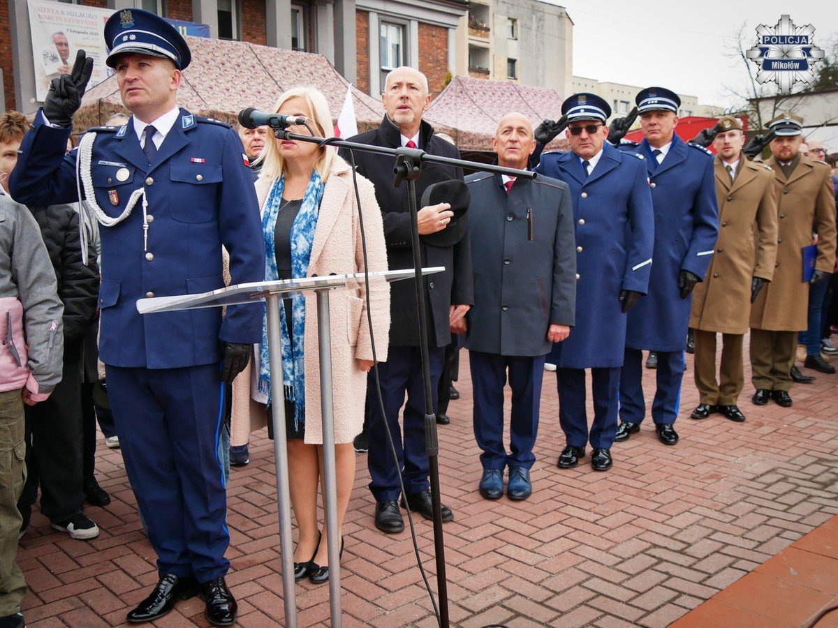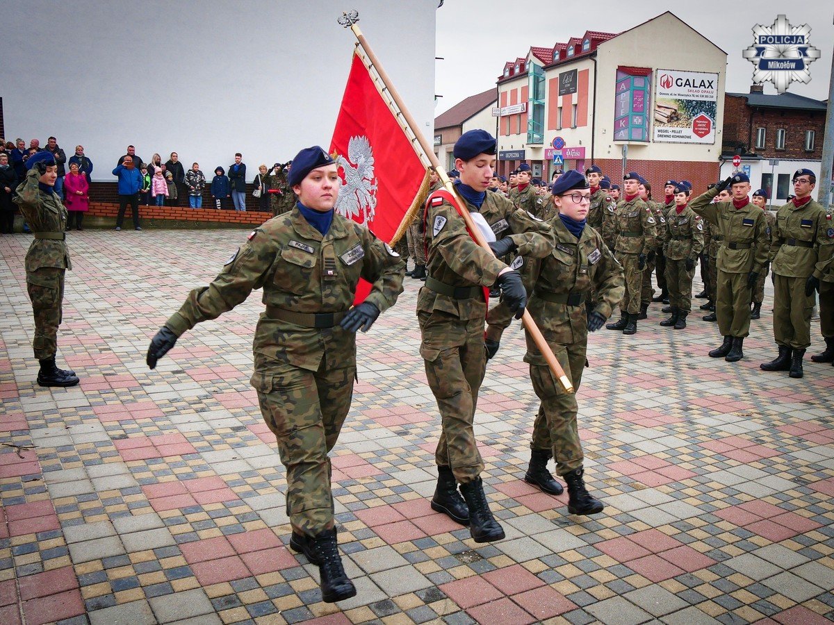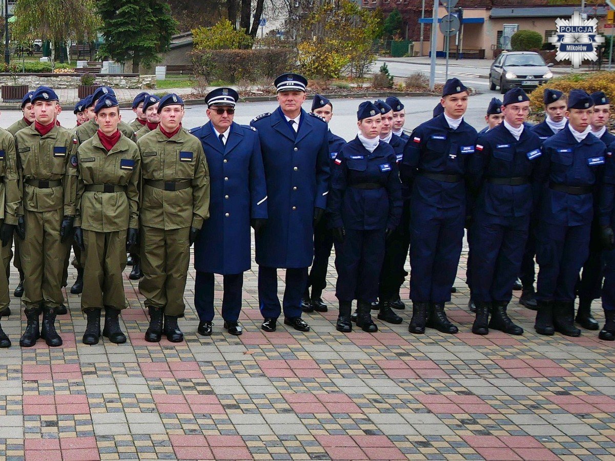 W 107. rocznicę odzyskania przez Polskę niepodległości na ternie powiatu mikołowskiego od samego rana trwały uroczyste obchody. Szef mikołowskiej komendy wraz z komendantem z Łazisk Górnych wzięli udział w głównych wydarzeniach, między innymi w uroczystym ślubowaniu klasy mundurowej jednej z miejscowych szkół średnich.