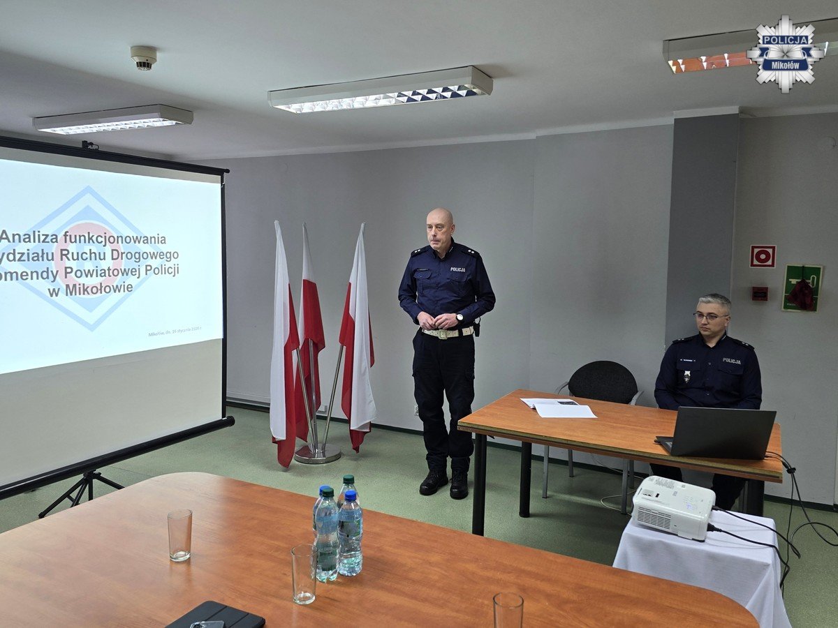 Policjanci omówili stan bezpieczeństwa na drogach całego powiatu. W ubiegłym roku mundurowi odnotowali 42 wypadki (w tym 4 ze skutkiem śmiertelnym) i 910 kolizji, ujawnili 251 nietrzeźwych kierujących. W Wydziale prowadzone były różnego rodzaju wzmożone działania: np. "Bezpieczny pieszy (RSD)", "Prędkość", "Truck & Bus", czy "Motocykl & Quad". Mundurowi zabezpieczyli też szereg imprez sportowych, takich jak: Wiosenny Oddech Smoka, Nightskating Mikołów i XX Mikołowski Bieg Uliczny.